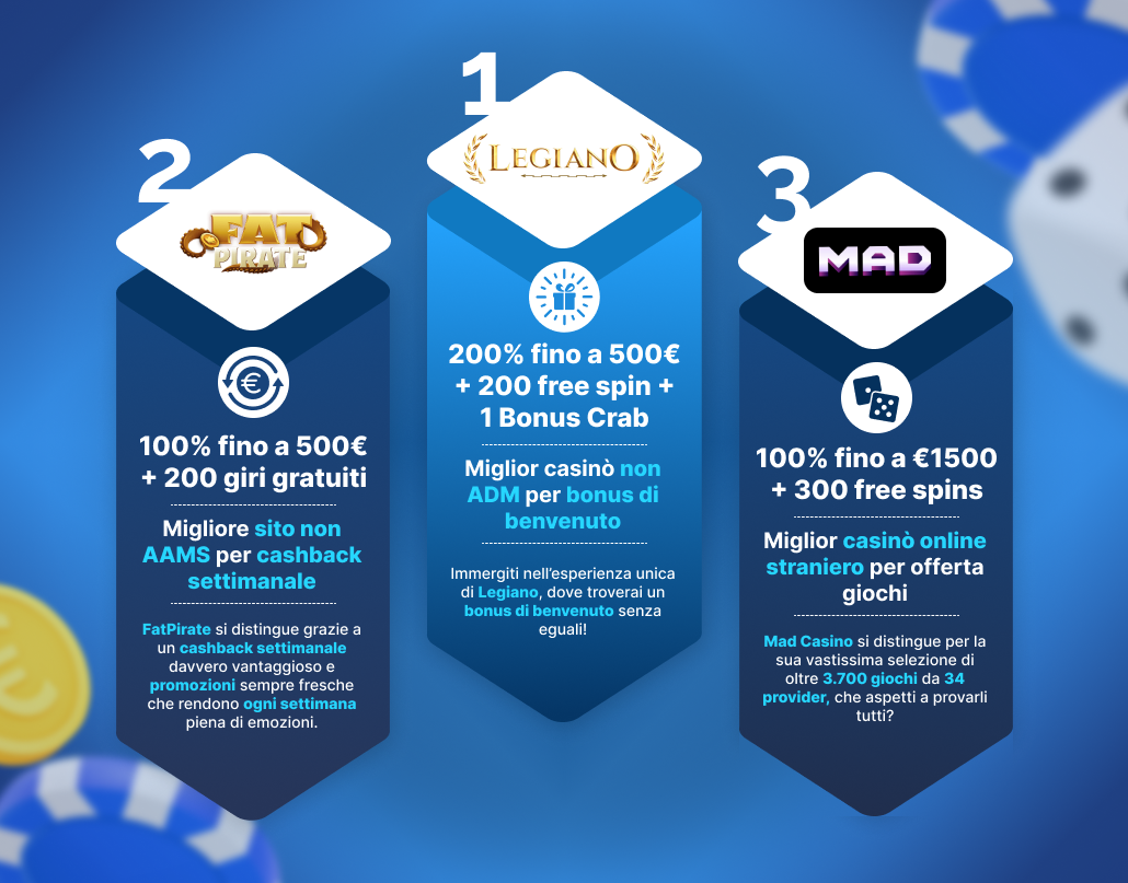 Il mondo dei casinò online è in continua evoluzione e sempre più giocatori italiani scelgono i casinò online non AAMS per un’esperienza di gioco più completa, versatile e utile. In questo articolo, vi guideremo alla scoperta dei migliori casinò online non AAMS, sicuri e affidabili. Si tratta di siti internazionali che, pur non essendo certificati in Italia, operano legalmente con licenze rilasciate da enti governativi internazionali come Curacao e MGA.